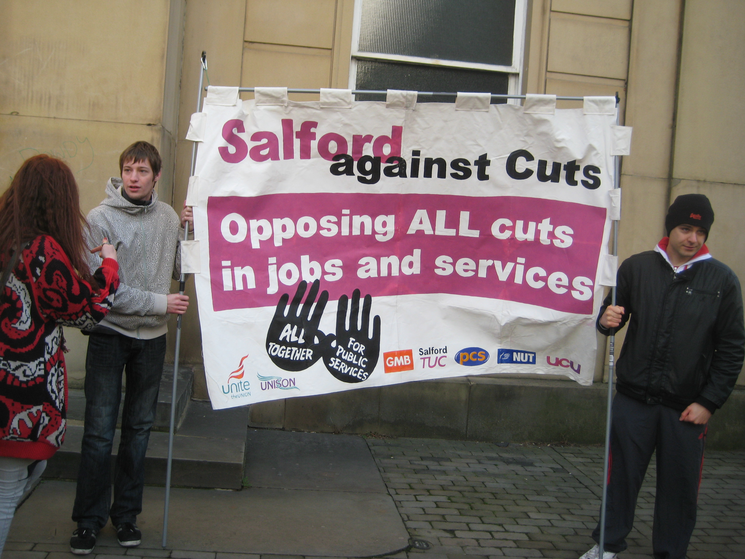 Salford Against the Cuts, started in October 2011, and which brings together trade unions, community groups and individuals. Salford Unison, which openly opposes the Labour Council agenda of “managing the cuts”, is a key partner.
