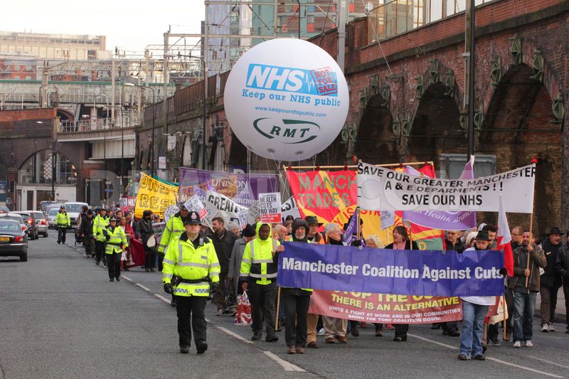 In Greater Manchester up to five local Accident and Emergency units are facing closure or downgrading under the proposed “Healthier Together” Review. In Rochdale the A&E has already closed. In Trafford, the birthplace of the NHS, local people have campaigned to save the A&E and, although last month the NHS Greater Manchester approved its downgrading to an urgent care centre, the matter has been referred to Health Secretary, Jeremy Hunt, by Trafford Council’s Health Scrutiny committee. Other local NHS services have also been privatised or face the axe to achieve alleged “efficiency savings”; the further “rationalisation” of services and spending cuts.