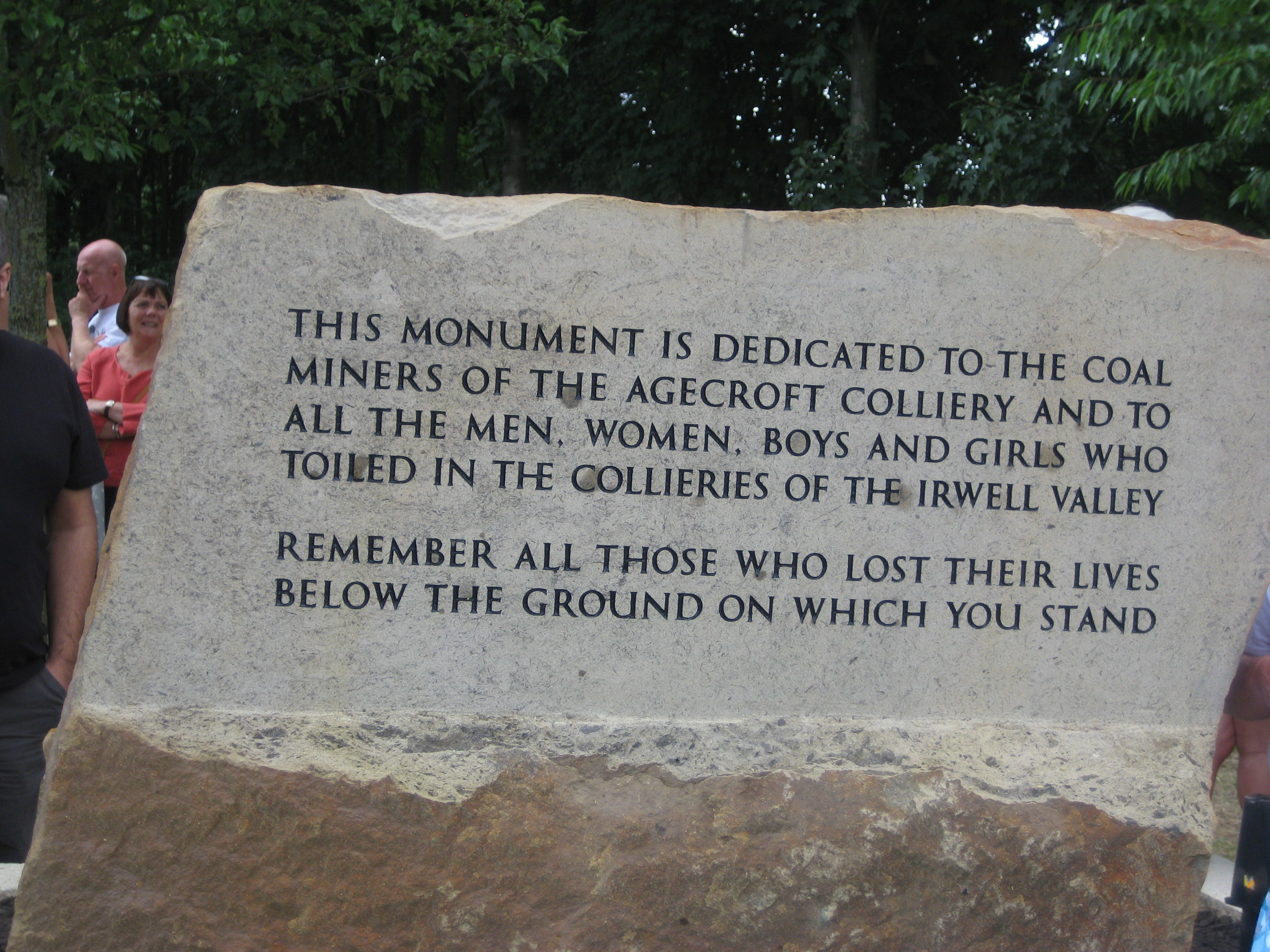Kelly now gives talks in local schools on the history and uses of coal to a generation of children who do not know what coal is. In September 2013 a monument to Agecroft colliery was unveiled where the colliery used to stand. It is a flower garden, built by the construction students of Salford College and decorated with ceramic tiles made by the children of St.Augustine’s Primary School.