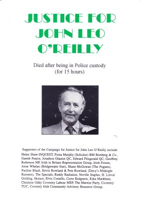 In October the IBRG demanded an inquiry into the death in police custody of Leo O’Reilly in Coventry.