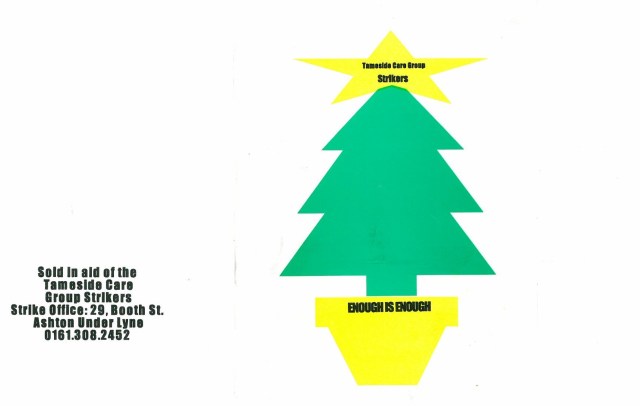 One of the strikers’ son produced a Xmas card for sale with the slogan “Enough is Enough”: 1000 were sold and the money donated to the strike fund. During the period of the strike the Hardship Fund for the strikers raised over £263,000 from Unison branches, members and the wider Labour movement.